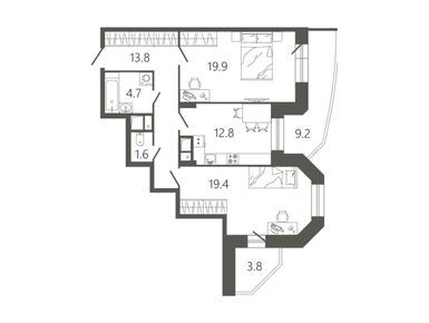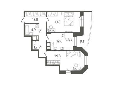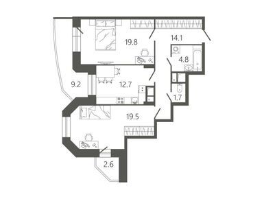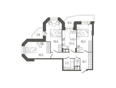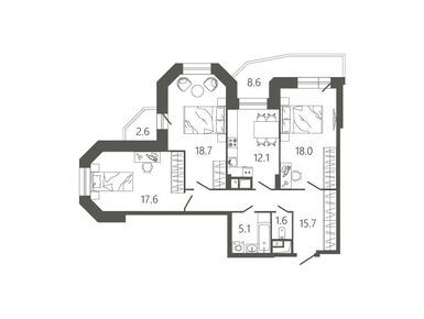 Планировки трехкомнатных квартир в ЖК «Советская 18» («МЕССИЕР 18»)