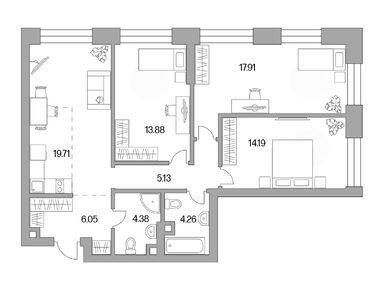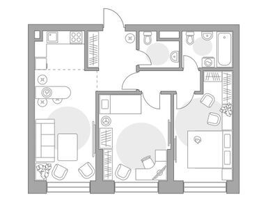 Квартирография комплекса включает в себя лоты с классической планировкой и евроформата площадью от 30 до 104 кв. м. В Mypriority Paveletskaya можно купить студию, квартиру с 1–3 изолированными спальнями, с гардеробной и гостевым санузлом. Высота потолков во всех помещениях 3 м.