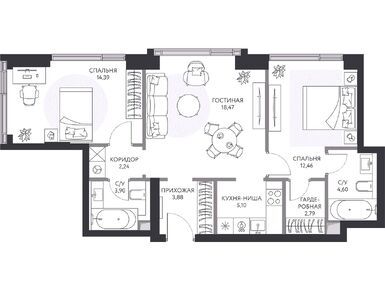 Планировки однокомнатных квартир в ЖК hide (хайд)
