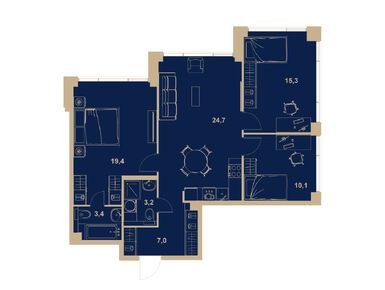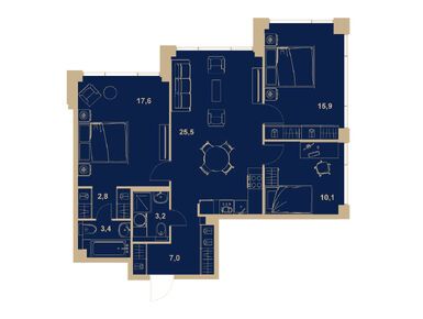 Планировки трехкомнатных квартир в ЖК «Зиккурат Преображенский»