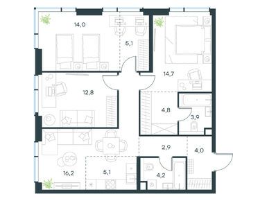 К концу июня 2024 года в проекте продавались квартиры площадью от 23,8 кв. м до 164,8 кв. м, это варианты от студий до 4-комнатных. Жилье реализуется с предчистовой отделкой white box. Купить квартиру в ЖК можно от 18,9 млн рублей. Высота домов — до 46 этажей — обеспечит отличные виды из окон. Среди планировок есть и пентхаусы.