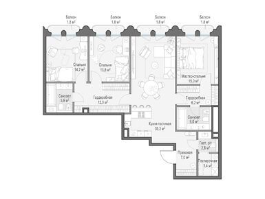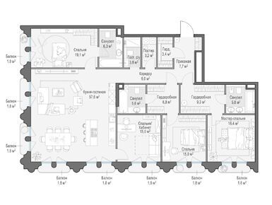 Квартирография комплекса включает такие уникальные форматы как лоты с видовыми террасами, патио, бассейнами и каминами, двухэтажные квартиры, пентхаусы, ситихаусы и виллы.