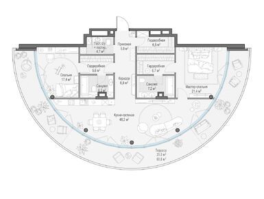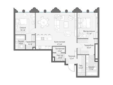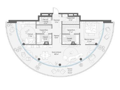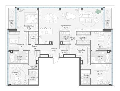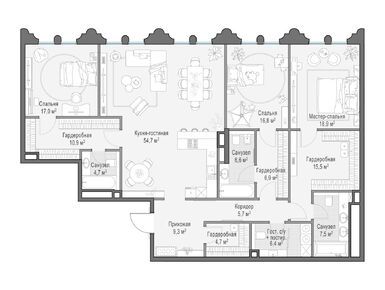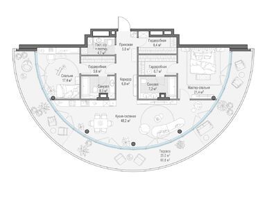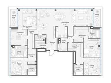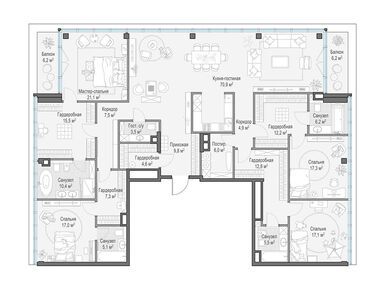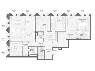 Планировки пятикомнатных квартир в Клубном квартале «Фрунзенская набережная»