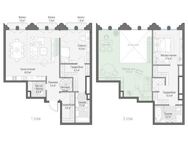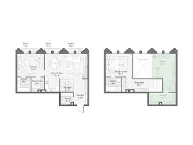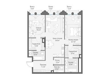Планировки многокомнатных квартир в Клубном квартале «Фрунзенская набережная»