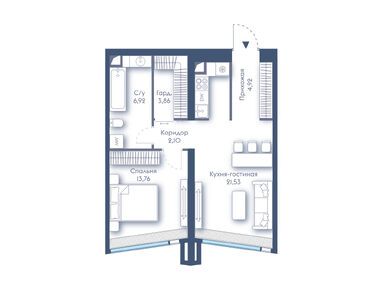 В феврале 2026 года для покупки доступна 221 квартира площадью от 50,71 до 226 кв. м. Особенности планировок: евроформат, гардеробные, постирочные, кабинеты, мастер-спальни, несколько санузлов. Цены — от 53,7 млн рублей за евродвушку площадью 54,72 кв. м. Жилье продается без отделки. Купить квартиру можно в ипотеку, рассрочку под 0% до ввода в эксплуатацию, по 100% оплате или в трейд-ин.