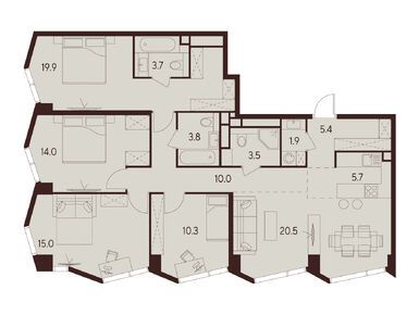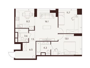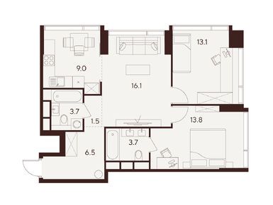 Сейчас на официальном сайте доступны 224 квартиры в корпусах A, B и C (все данные в комментарии приведены на конец декабря 2024 года). Цены на квартиры начинаются от 15 млн рублей. За эти деньги продается студия площадью 19,9 кв. метра на пятом этаже корпуса C. Самый дорогой вариант из представленных сейчас — квартира с тремя спальнями, просторной кухней-гостиной и тремя санузлами. Площадь этого лота — 93,7 кв. метра, а стоимость — 78 млн рублей.