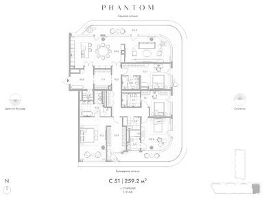 Жилой фонд Клубного дома Phantom представлен 36 лотами, самый компактный из которых имеет площадь 165 кв. м., а самый просторный достигает 1458 кв. м. Покупателям предлагаются квартиры с 1–4 спальнями. Все спальни формата «мастер» с индивидуальной зоной хранения или полноценной гардеробной, а также отдельным санузлом.