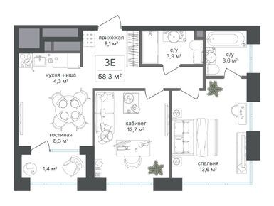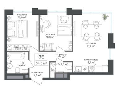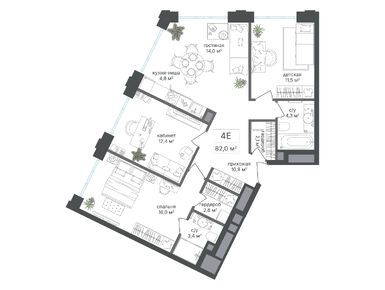 Самый дорогой вариант – квартира площадью 84,1 кв. м с тремя спальнями, двумя санузлами, просторной кухней (14,7 кв. м) и двумя лоджиями. Этот лот сдается без отделки, а стоит 28 млн рублей.