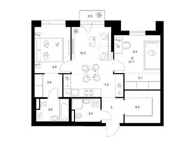 Планировки трехкомнатных квартир в Лосиноостровский парк