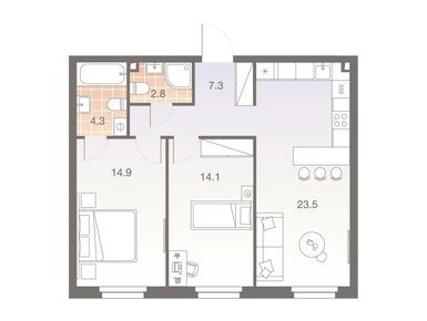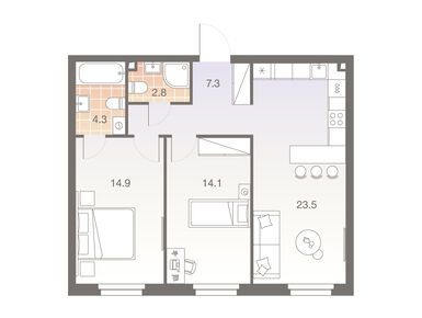 Планировки однокомнатных квартир в ЖК Twelve (Твелв)