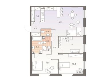 Планировки пятикомнатных квартир в ЖК Twelve (Твелв)