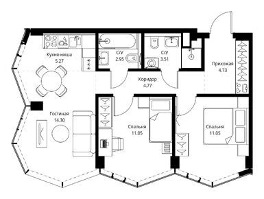 В то же время в составе жилого комплекса нет своей социальной инфраструктуры, а мест в подземном паркинге явно недостаточно для проекта такого уровня. Еще один минус — близость проспекта Мира, однако это же и обеспечивает хорошую автомобильную доступность.
