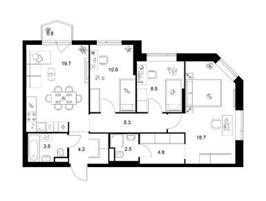 Планировки трехкомнатных квартир в Руставели 14