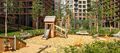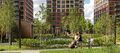 Благоустройство, как и обычно в проектах ПИК, включает в себя дворы-парки с пространствами для отдыха, спорта и игр, также предусмотрен бульвар с велодорожками и сухим фонтаном и специальная площадка для выгула собак с тренировочными снарядами.