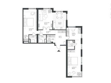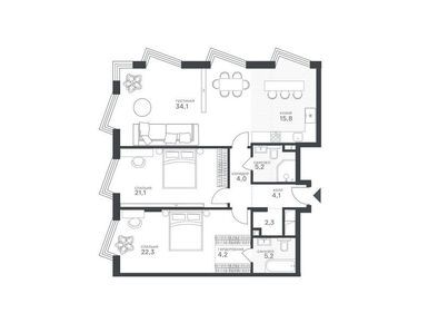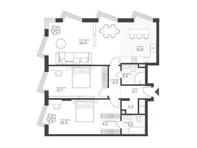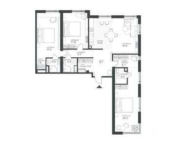 Планировки многокомнатных квартир в Клубном квартале «Крылатская 33»