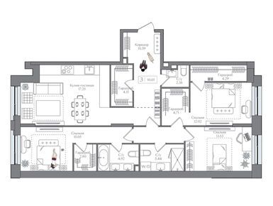 Планировки четырехкомнатных квартир в ЖК «Преображенская площадь»
