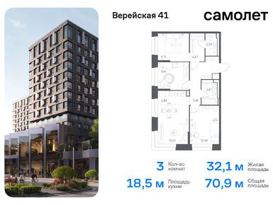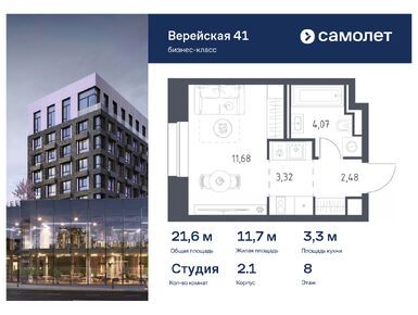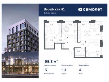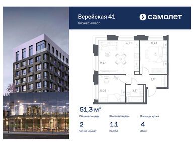 В проекте предложена широкая линейка планировочных решений. В домах «Верейская, 41» можно купить как студию площадью 22 кв. метра, так и четырехкомнатный лот евроформата площадью 98,1 кв. метра. А самый большой из имеющихся в продаже юнитов — двухкомнатный площадью 104,2 кв. метра. На первом этаже есть варианты с патио и потолками высотой 4,5 метра. На верхних этажах — пентхаусы. Все лоты в проекте «Верейская, 41» сдаются с готовой отделкой, так что новоселам останется только купить мебель самостоятельно или добавить опцию «меблировка», доступную для большинства ЖК застройщика «Самолет».