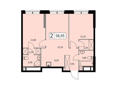 2-комн. квартира 54,80 м2 22 300 809