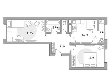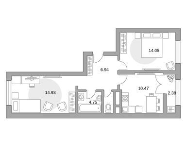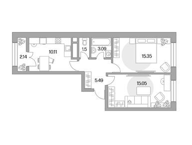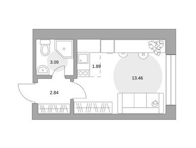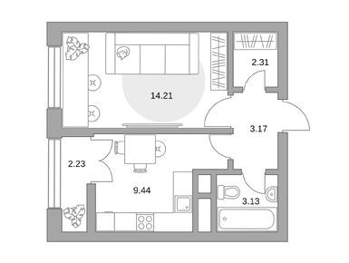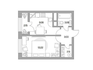 Квартирография корпуса № 1 представлена студиями, однокомнатными, двухкомнатными и трехкомнатными лотами. Площадь квартир варьируется от 19 до 72 кв. м. Часть квартир продается с готовой отделкой, в остальных — можно реализовать собственные дизайнерские и планировочные идеи.