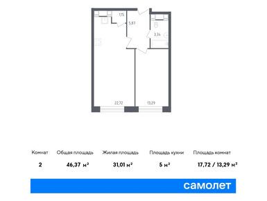 Планировки двухкомнатных помещений в «Пятницкое 58»