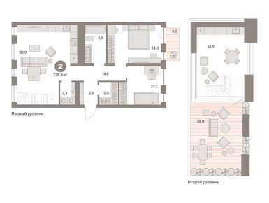 2-комн. кв, 128.90 м