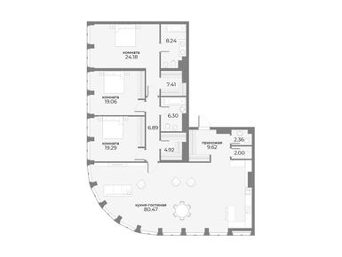Проект сдан в эксплуатацию в 2024 году. В середине января 2025 года в продаже имеются 65 лотов площадью от 45,2 кв. м до 413,96 кв. м, это варианты от евродвушек до многокомнатных пентхаусов. Цены — от 42,5 млн рублей.