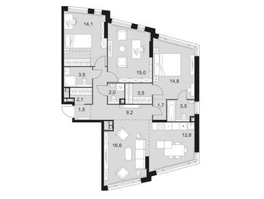 В ЖК «Роттердам» запроектированы квартиры евроформата — от студий до 5-комнатных, их площадь варьируется от 27 до 143,8 кв. метров. Среди лотов есть варианты с собственными террасами, лоджиями, угловым остеклением, окнами на три стороны, 60% квартир имеют вид на Москву-реку.