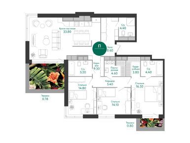 В проекте много необычных планировок: с окнами на три стороны, с угловым остеклением, с террасами, лоджиями и парящими балконами, с окнами в ванных, с мастер-спальнями и огромными гардеробными, с гостиными, залитыми светом из 2 или 3 панорамных окон во всю стену. Есть лоты с готовой отделкой или без нее. Отделка выполнена в скандинавском стиле в холодных или тёплых тонах.