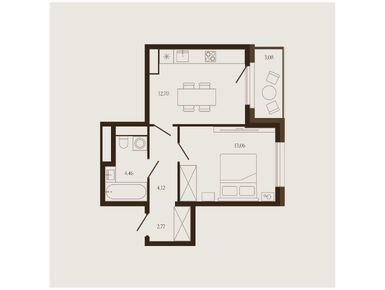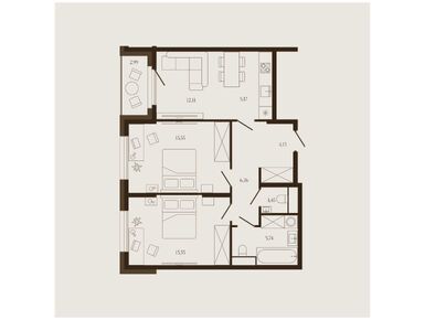 2-комн. квартира 43,08 м