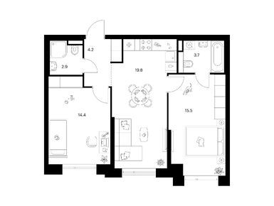 Планировки двухкомнатных квартир в Середневский лес