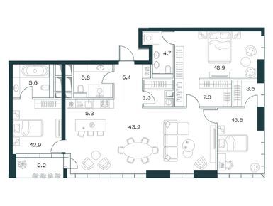Планировки многокомнатных квартир в ЖК SHIFT (Шифт)