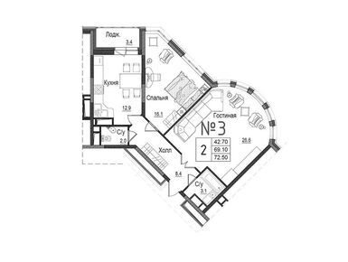 В проекте будет всего 112 квартир, среди которых студии, однокомнатные, двухкомнатные и трехкомнатные. Планировки классические, хотя в некоторых лотах площадь кухни вполне позволяет выделить и гостиную зону. Есть лоты нестандартной формы: с пятиугольными комнатами и студии, расширяющиеся от окна к выходу.