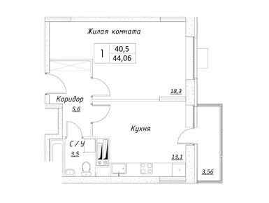 1-комн. кв, 44.00 м