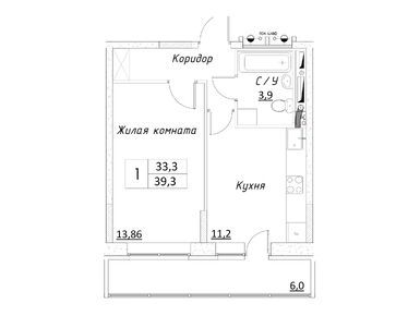 1-комн. кв, 39.30 м