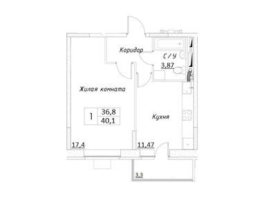 1-комн. кв, 40.10 м