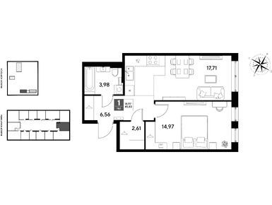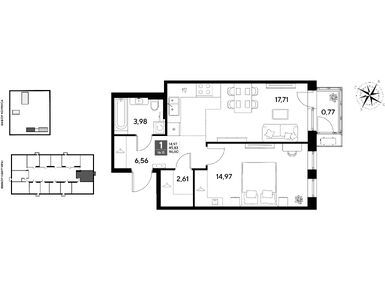1-комн. кв, 45.83 м