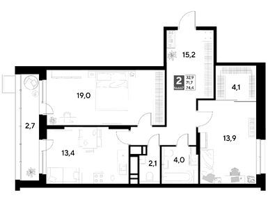 2-комн. кв, 74.40 м