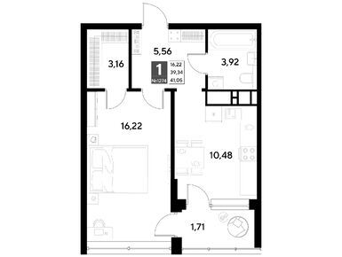 1-комн. кв, 41.05 м
