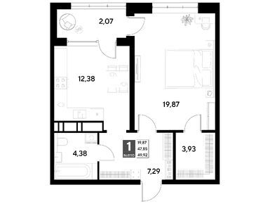 1-комн. кв, 49.92 м