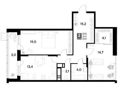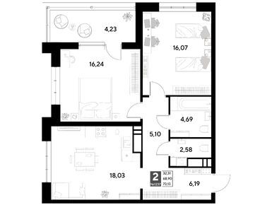 2-комн. кв, 73.13 м