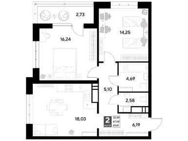 2-комн. кв, 69.81 м