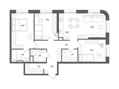 Планировки четырехкомнатных квартир в ЖК STONE Sokolniki (Стоун Сокольники)