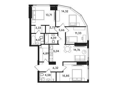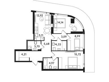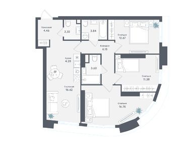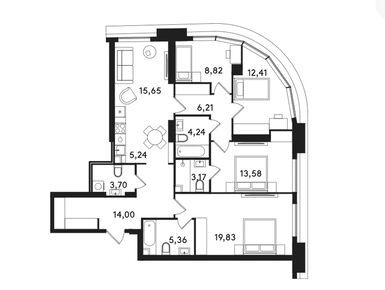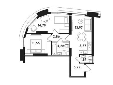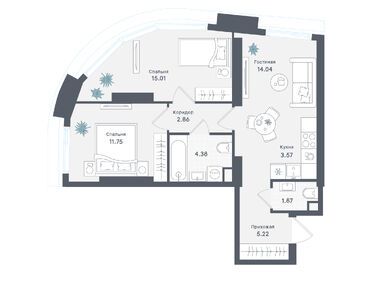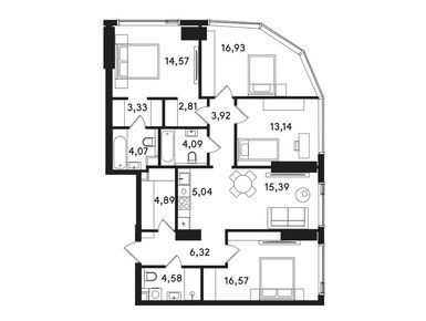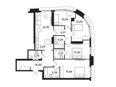 В жилом комплексе будет 1 243 квартиры площадью от 29,12 до 147,52 кв. м, на верхних этажах запроектированы пентхаусы. Продажи стартовали в мае 2025 года, в середине июля для покупки доступны 126 квартир от студий площадью 29,19 кв. м до вариантов с четырьмя комнатами и кухней-гостиной площадью 127,56 кв. м. Квартиры продаются без отделки, цены — от 14,7 млн рублей.