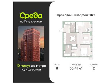 ЖК «Среда на Кутузовском» строится в экологически благоприятном районе Кунцево, в западной части Москвы. Окружение новостройки составят жилые кварталы и природные объекты, в пешей доступности у новоселов будут метро, МЦД и вся необходимая инфраструктура.