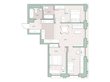 В зависимости от корпуса и этажа, на одной площадке может располагаться от 4 до 13 квартир — чем выше этаж, там меньше квартир и больше их площадь. В проекте много однокомнатных и двухкомнатных лотов. Также есть трехкомнатные и четырехкомнатные варианты, студий совсем немного. Площадь квартир — 23–121 кв. м.