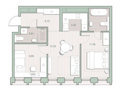 В ЖК «Среда на Кутузовском» можно купить как квартиру с типовой планировкой, так и редкие варианты с проходной ванной, персональными гардеробными, опоясывающими террасами. Во всех квартирах будет выполнена предчистовая отделка, включающая в себя, кроме основных работ, дополнительную шумоизоляцию, выводы под электрошторы и теплые полы, а также встроенные решения для «Умного дома».