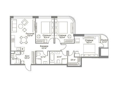 Планировки трехкомнатных квартир в Stories на Мосфильмовской