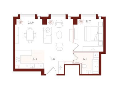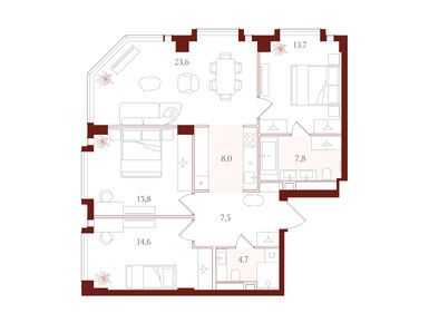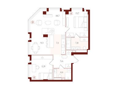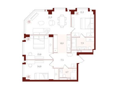 Планировки трехкомнатных квартир в ЖК «АУРА»