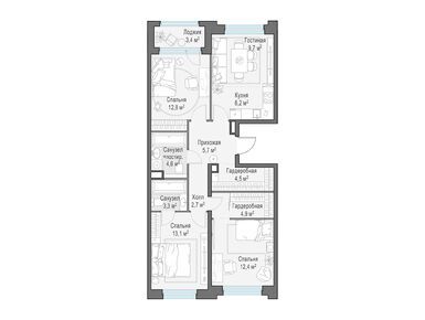 Планировки четырехкомнатных квартир в ЖК «Белый Град»