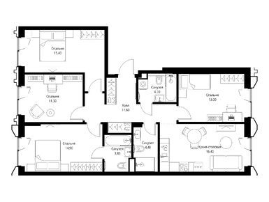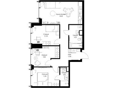 Площади помещений варьируются от 20 до 157 кв. метров — от студий до шестикомнатных квартир с несколькими мастер-спальнями, гардеробными и просторной кухней-гостиной. Во всех квартирах ЖК «Веер» будет выполнена предчистовая отделка MR Base по стандарту МР Групп.